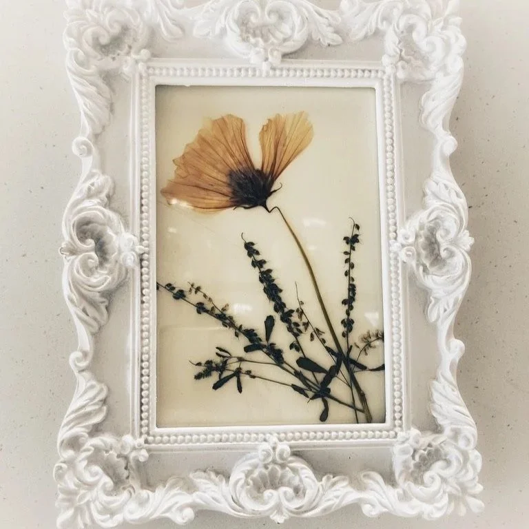 Enjoy flowers even when they’re no longer in season with framed, pressed flowers and dried floral wreaths/